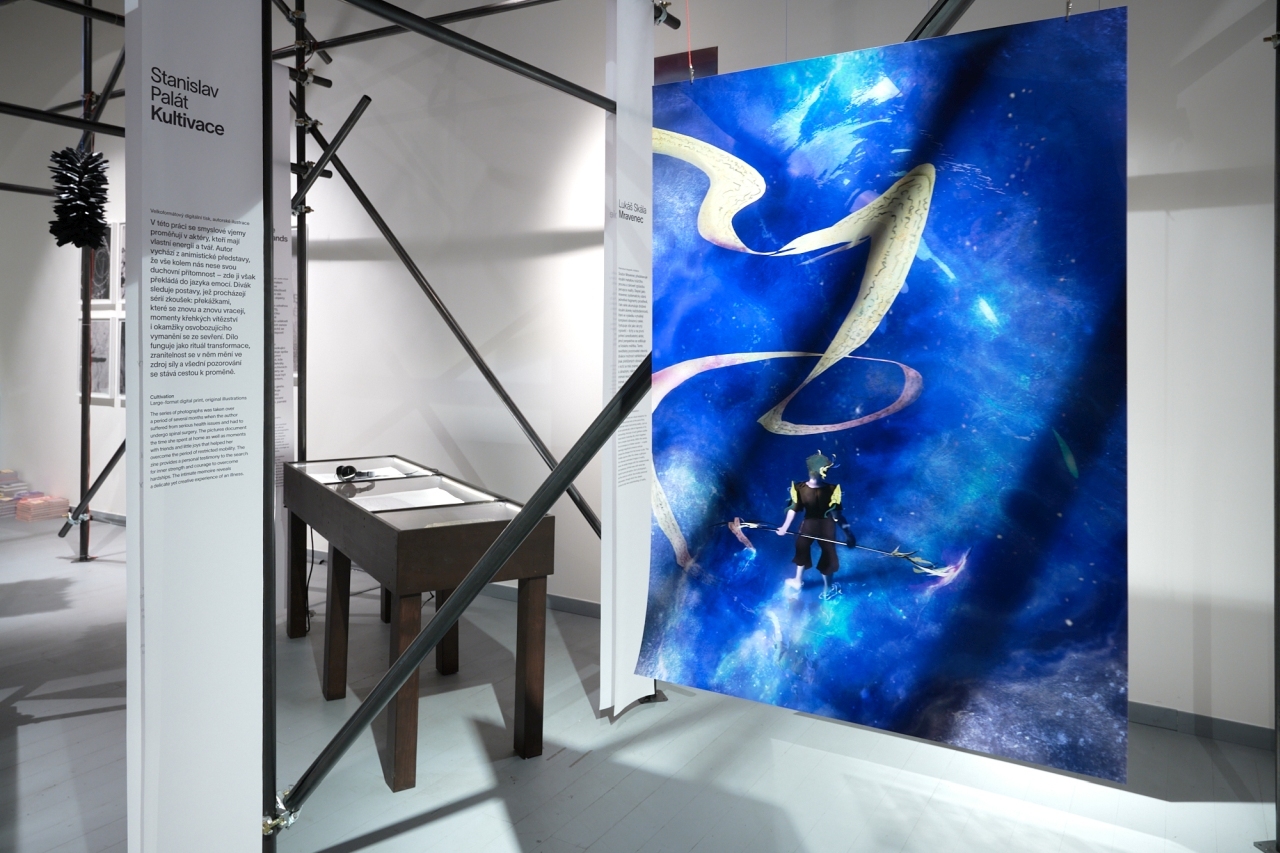 Odvaha, aktuální výstava v Galerii UM, představuje soubor děl studentek a studentů Ateliéru fotografie II UMPRUM, která vznikala pod vedením Aleny Kotzmannové a Karin Zadrick. Projekt, který byl původně zadán pro přehlídku Designblok, získal širší rozsah. Ohledává téma odvahy z mnoha perspektiv a zachycuje jej prostřednictvím různých médií.